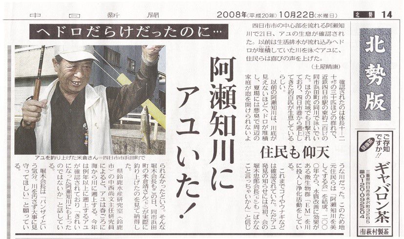 2008年10月22日,春日?qǐng)?bào)關(guān)于Ayu魚回到Asachi河的文章